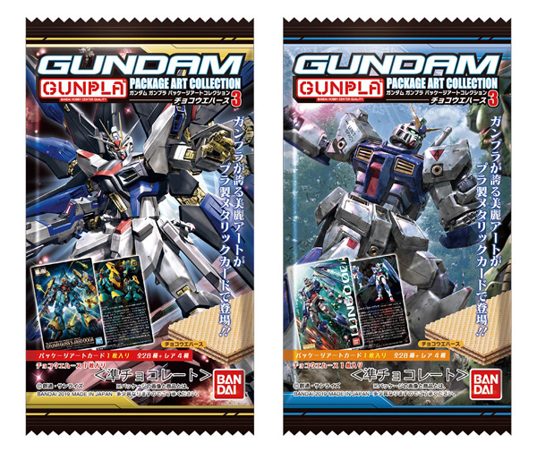 将高达模型的精美外盒插图制造为塑胶卡片的“GUNDAM GUNPLA PACKAGE ART COLLECTION巧克力威化饼3”,于本日10月21日(一)起在日本国内量贩店点心卖场等处发售。售价为120日圆(未税)。