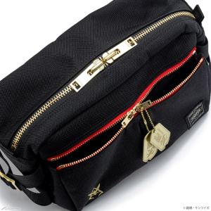 所有产品皆采用轻便同时具有优异抗磨擦强度的“CORDURAR尼龙”。本体配色使用让人联想到夏亚身着披风的”黑色”,内衬四处印有夏亚个人标志”红色迷彩图案”。另外还内附”个人标志”金色刺绣、红色魔鬼毡贴纸、识别牌1组2片,营造出特别感觉。