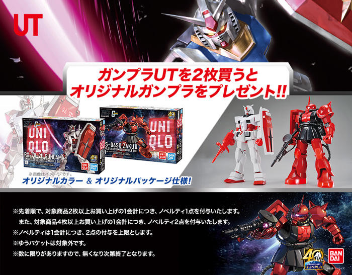 另外,购买2件“附高达模型特典UT”,就会赠送作为购买特典的“UT原创限定高达模型”。因为数量有限,所以不要错过!