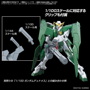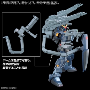 可以从大型步枪、格林机枪和飞弹3种武装自由组合替换。机械臂可灵活动作,安装各种武装。透过内附的接合零件,除了可以安装在部分HG系列上,也可重现格林机枪的开合状态。