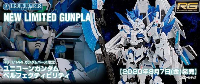 高达模型综合设施“THE GUNDAM BASE(高达基地)”于今天8月7日(五),发售高达基地限定高达模型“RG 独角兽高达 PERFECTIBILITY”和“哈啰模型 机动哈啰〔高达基地配色〕”。