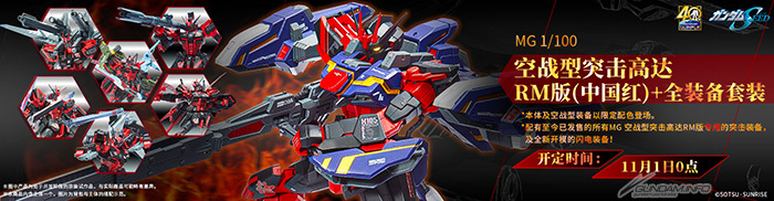 天猫限定MG 1/100 空战突击高达RM版(中国红)+全装备套装开启预定!