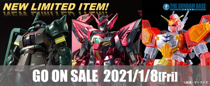 高达模型综合设施“THE GUNDAM BASE(高达基地)”,决定于2021年1月8日(五),发售高达基地限定“MG 艾比安高达 EW〔特别镀膜〕”、“HG 渣古II(21stCENTURY REAL TYPE Ver.)”和活动限定“HG 重装高达〔透明配色〕”。