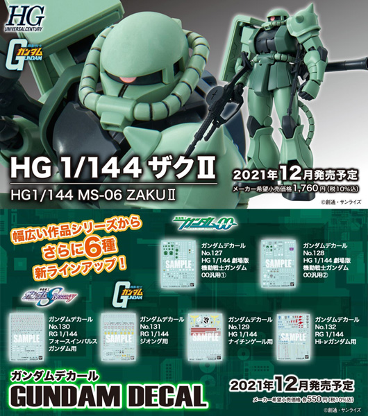 BANDAI HOBBY SITE决定于12月发售“HG 渣古II”和“高达水贴”6种。