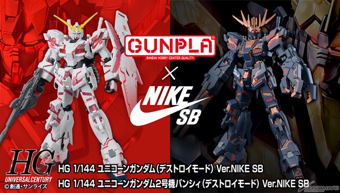 为了纪念Nike的滑板品牌“Nike SB”和‘机动战士高达UC’联名,高达模型“HG 独角兽高达(破坏模式)Ver.NIKE SB”“HG 报丧女妖(破坏模式)Ver.NIKE SB”决定商品化。