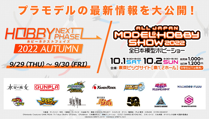 各商品皆于本周末10月1日(六)・2日(日)在东京国际展示场南1・2厅举办的“第60届全日本模型HOBBY SHOW”上展示,所以请务必前往看看。门票为预售票1,000日圆(含税)、当天票1,200日圆(含税)、国中生以下免费进场。
