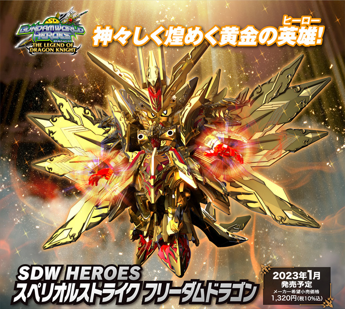 出自‘SD高达世界群英集’的“SDW HEROES 至高强袭自由飞龙”等将加入2023年1月至3月的商品阵容。