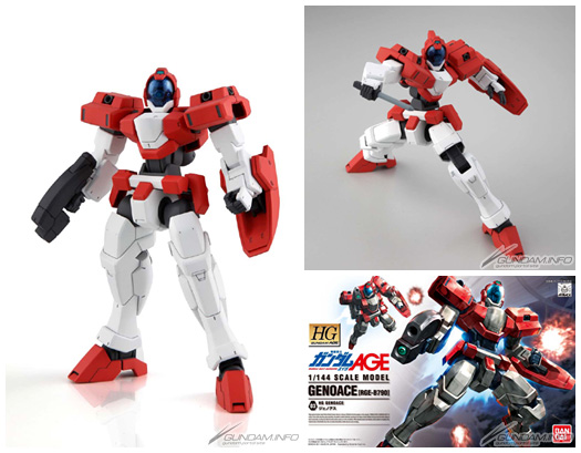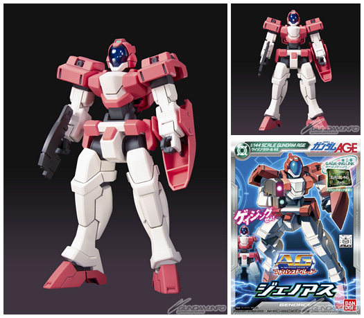 出自『机动战士高达AGE』地球联邦军的量产型MS「杰诺亚斯」登场!头部面罩为透明零件,重现出内部的机械细节。另外丰富的武装满载机关!
