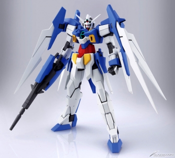 出自‘机动战士高达AGE’,第二世代的主角机“高达AGE-2 一般型”快速登场!彩色塑料与反光贴纸重现设定的配色!胸部、躯干导入球型关节之外,特征的4根羽毛采用2轴可动机构!另外还附有充满跃动感的手部零件。