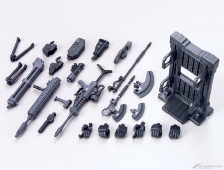 部份组装完成组件“SYSTEM WEAPON”系列第2弹登场!“光束步枪”与“电热斧”以附属的零件替换就能呈现各种变异样式喔!