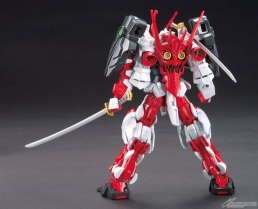 在‘ 高达创斗者’中登场,以‘机动战士 高达SEED ASTRAY’系列的人气MS“红色机”为基础来改造的“战国异端顽驮无”HG化!采用2013年导入的新设计HG规格,以追求造型及更加宽广的可动范围!此外,特色所在的双刀和双肩荚舱设计也在商品上重现!