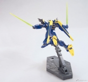 在‘ 高达创斗者’中登场,以‘新机动战记 高达W’的飞翼 高达来改装成单翼样式的“凤凰飞翼 高达” HG化!左右非对称的设计以及头部的伤痕等特征,都以丰富的细节来重现!除了有附属各种武装外,还有透明零件制的光束斗篷!