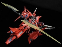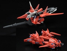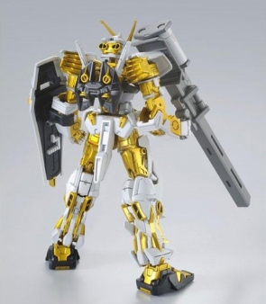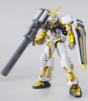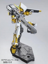 “HG 异端 高达金色机”是使用成形色彩和新造型重现故事中的设定,而藉由有着广大可动范围的关节机构,可以摆出灵活的姿势来。除了内附大型火箭炮“350mm磁轨火箭炮‘Gae Bolg(神枪)’”外,只要替换右腕肩部专用零件,就能够重现故事中的场面。