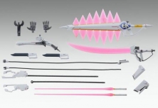 “光之翼”的形状是带着凹凸感的皱褶,藉由渐层印刷和反射处理来表现复杂的光影表现;“超级龙骑兵射出重现零件”的支架部分,可以用一根支架表现出发射的场面,或者是透过两根支架来表现立体交叉飞行的轨迹。并且还附上摆姿势时不可或缺的透明烟灰色“动态底座2” 。