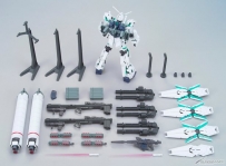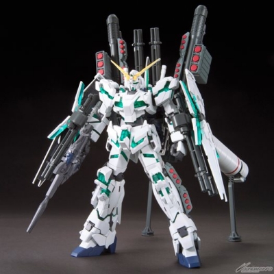 出自‘机动战士高达UC episode 7“彩虹的彼端”’,“全武装独角兽高达”在HGUC系列上登场!精神感应框架以透明绿成形!内附3枚盾牌的立架,能够展现高达模型才能有的展示!