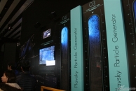 ▲闸门型荧幕投影了大魄力影像!此外,中央仿造冲床的部分打开时,零件就仿佛浮在空中一般!