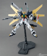 出自‘机动新世纪高达X’,新地球联邦军开发的“高达X”强化发展机,新型高达型MS在MG上登场。内部框架和反射器的零件构成与“MG 高达X”有共通性,本设计对于后继机的说法有着相当高的说服力。并且在反射器内侧采用镜面贴纸,用来表现集光状态。
