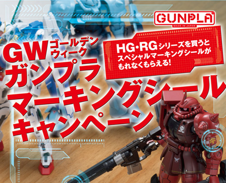 请务必入手标志贴纸,在黄金周制作高达模型吧。