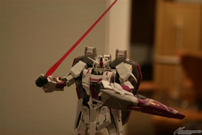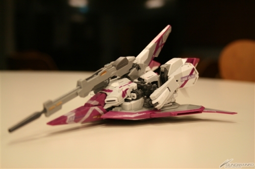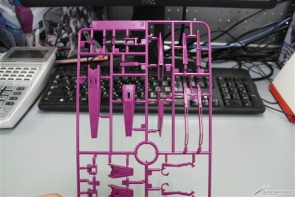 ▲最后把手腕组上,这样基本的本体就完成了。白与灰中的紫色,确实相当显眼。