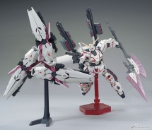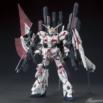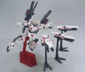 『机动战士高达UC RE:0096』中的「全装甲型独角兽高达(毁灭模式)」以红色样式登场!精神感应框体从透明绿换成透明红,配合『RE:0096』中カトキハジメ设计的新标志贴纸,并附属新的大型武器「超极光束戟」!并搭配丰富的配件组,能够重现全装备型态!附属盾牌格林机枪用的专用底座,可同时重现、展示3面盾牌!