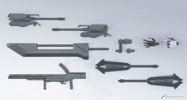 『铁血的奥尔芬斯』配件组第5弹登场。内含「HG 高达・巴巴托斯 天狼型」专用腕部200mm炮、双锤矛等武装及手掌零件,可组合成多采多姿的姿势。还附有泛用性高的关节零件,可组合各式改装高达模型。再加上还有铁华团使用的新机动工兵。