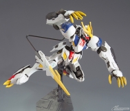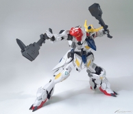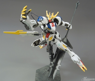 『机动战士高达铁血的奥尔芬斯』第2季中的新主角机「高达・巴巴托斯 天狼型 帝王形态」於HG最速立体化!以全新的零件忠实地再现巨大的前腕部丶和如同野兽般的头部天线造型!腕部内藏的机械臂也可以展开,分离式的背部武装可以透过铁丝再现攻撃状态!也附属了握柄可伸缩的超大型锤矛!