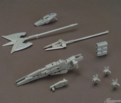 适合搭配吉翁系MS的丰富武器组在HGBC登场!「W光束战斧」搭载了替换式的伸缩构造,可拉长至超过HG本体以上的大小!「感应炮荚舱」内附3个感应炮,采用改良至沙萨比装备的造型!「火箭炮」可装备在後背包,能使用握把和连接臂来呈现双手握持姿势!另外,拥有3mm孔径的高达模型也可利用机械臂来装备!还有内附可单手持的步枪!