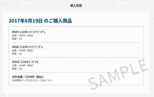 另外,在我的页面除了能确认购物纪录及剩馀点数外,还能从网站内或经由电子邮件收到超值的活动情报,请务必利用本机会来好好运用一下「THE GUNDAM BASE TOKYO MEMBERS CARD」吧。