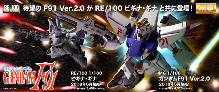 BANDAI HOBBY事业部推出的「MG 高达F91 Ver.2.0」和「RE/100 比基纳·基娜」决定分别於5月和6月发售。