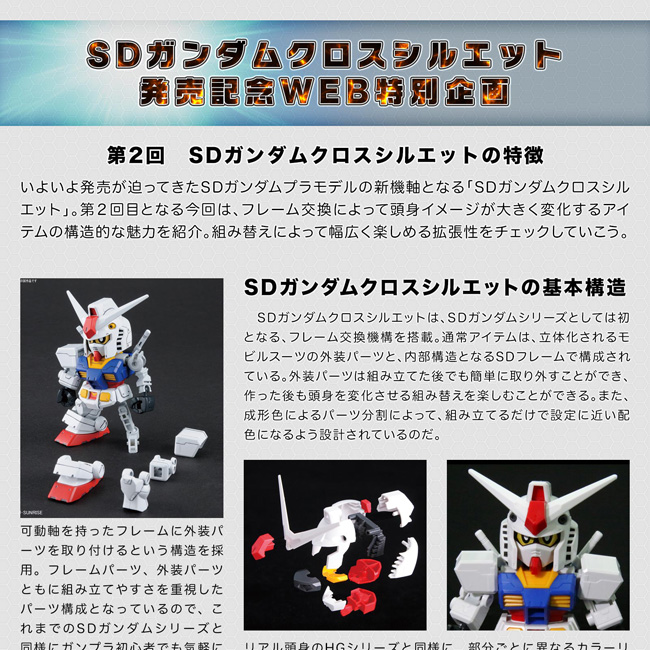 BANDAI HOBBY SITE公开了第2回「SD高达 CROSS SILHOUETTE发售纪念WEB特别企划」。