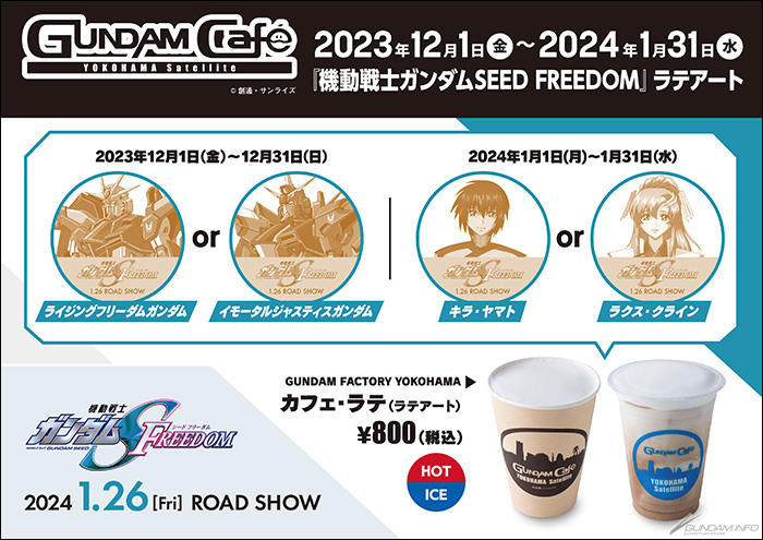 12月1日(五)起,设施内2F“GUNDAM Cafe YOKOHAMA Satellite”将举办纪念‘机动战士高达SEED FREDDOM’剧场上映前的合作企划活动。