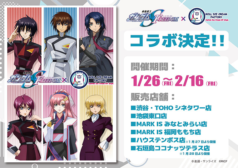 ‘机动战士高达SEED FREEDOM’和炒冰专卖店“ROLL ICE CREAM FACTORY”的联名活动,于今天1月26日(五)起陆续开跑。