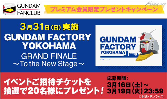 GFC将举办有机会抽中“GUNDAM FACTORY YOKOHAMA GRAND FINALE ~To the New Stage~”招待门票的活动!