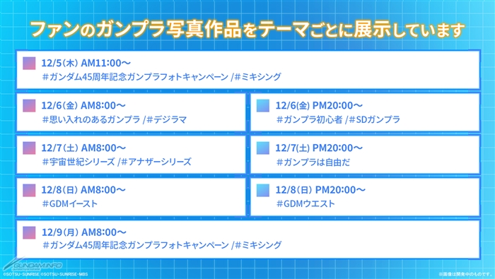 终于逼近到下周的“高达元宇宙 第3次期间限定开放”。这次举办时间从12月5日(四)横跨至9日(一),除了举办初音未来合作演唱会外,还会开设元宇宙商店,另外还有凭藉高达粉丝的协助才能实现的内容,可以享受到各种企划。