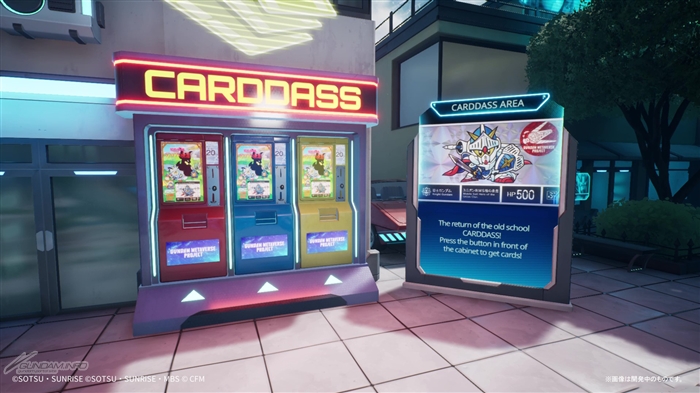 设置在主大厅的CARDDASS自动贩卖机。可以获得骑士高达第1弹和第2弹,扩充了收集的卡片。另外,也实现了CARDDASS收藏册的机能,所以请务必收集看看。