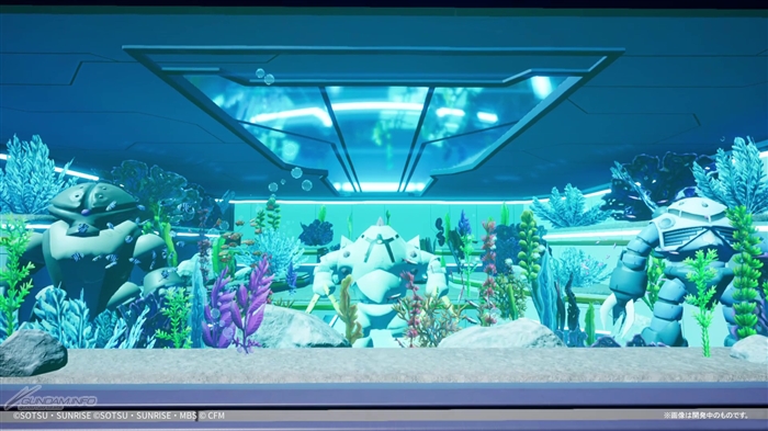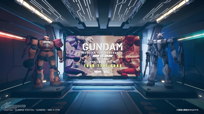 可以观赏PV等影片的剧院。还有‘机动战士高达 复仇的安魂曲’中登场的扎古II F型(索拉里机)和高达EX立像。