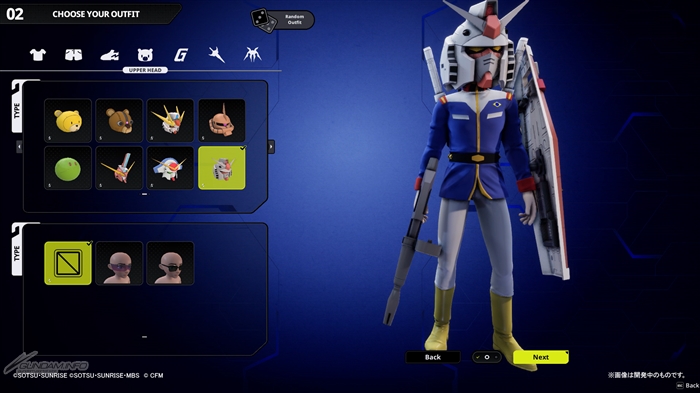 这次虚拟人物编辑机能也大幅更新。除了可以变更体型、发型、胡须及肤色外,还能够装备MS头部外观的头饰、武器及盾牌、背包、高达服装等。为了纪念和初音未来合作,还准备葱型的萤光棒及法被等虚拟道具。