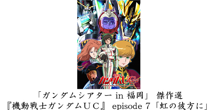 同时,12月8日(日)在TOHO CINEMA 福冈啦啦宝都也将以“高达电影院 in 福冈” 杰作选为主题,播放‘机动战士高达UC’ episode 7“彩虹的彼方”。