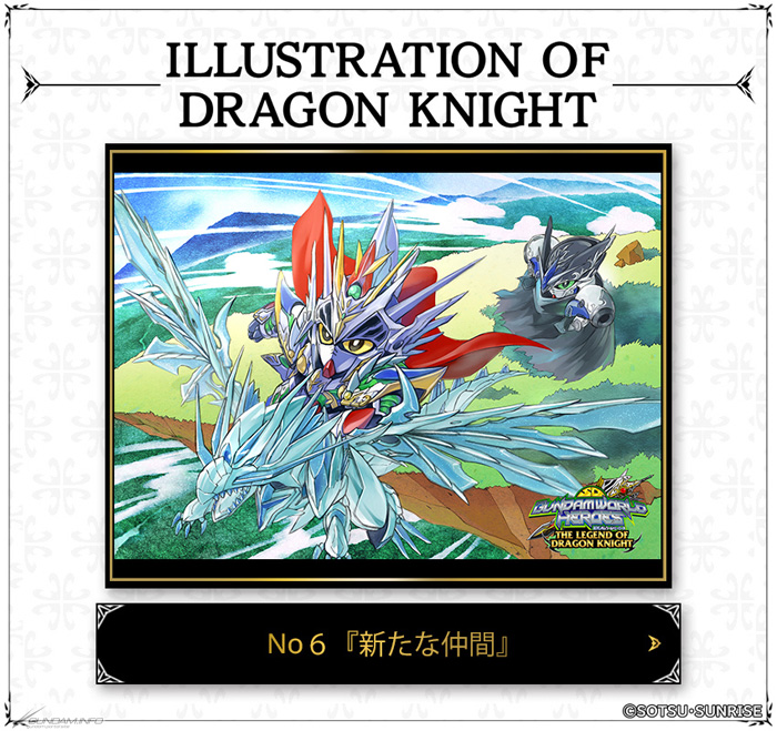 这次的第6回中,将在‘SD高达世界三国创杰传’和‘群英集’动画本篇等,许多SUNRISE作品担任作画监督的动画师片山学绘制。以“新伙伴”为主题,描写了骑士强袭高达和莱夫高达GP04,和在旅途中相遇的龙心灵相通的情况。