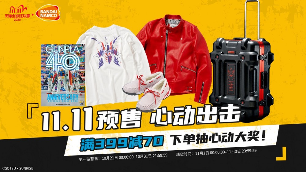 天猫国际独家专享粉丝期盼已久的GUNPLA40周年官方指南!以及STRICT-G JAPAN系列服饰,展现日本设计的魅力!还有融合复古Vintage质感的SEVESKIG联名款机车夹克、刺绣双面夹克、莫卡辛鞋以及与PROTEX合作的超赞行李箱等双11的重磅超值惊喜尖货,隆重登场!