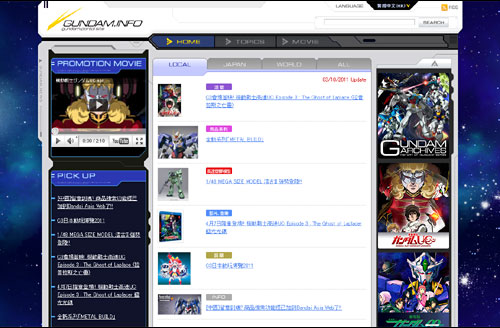 作为海外版高达Info.第一弹,在今天开始公开的有「英文版」、「简体中文版」、「繁体中文版(香港)」、「繁体中文版(台湾)」共计4国家的语言。为了亚洲及英语圈国家喜爱高达的粉丝朋友们,特别献上与日本国内・海外都可以收到所有与高达相关的最新情报!
