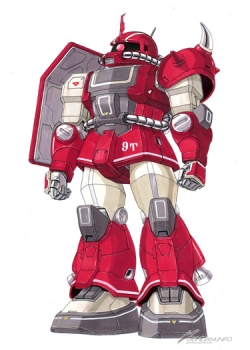 本企划的主角机,是乍看之下会误认为古夫,左肩装备狼牙肩甲的“陆战高机动型渣古”!虽然本机是在“MSV-R”中已经登场过的机体,但是本次的连载将是由大河原邦男全新绘制的配色喔!