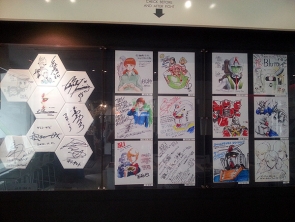 为庆祝“机动战士高达 蓝光纪念盒装版”发售,在东京・秋叶原营业的高达官方咖啡厅“GUNDAM Cafe”,展出了许多和高达有因缘的漫画家们所提供的亲笔签名板。