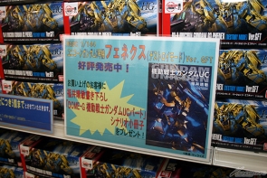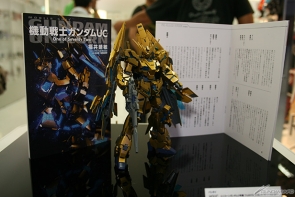 ▲也有展示“HGUC独角兽高达3号机 不死鸟(暂译)(毁灭模式)Ver.GFT”的实作范例和购入特典的剧本小册喔!