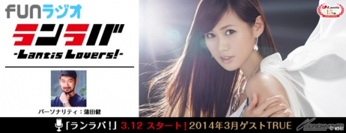 唱 片公司“LANTIS”歌手大集合的新节目“LANTIS LOVER!”,是每月都会邀请该公司人气歌手,未大家送上歌曲秘辛以及独家消息的节目。是个可以改变广播历史的超浓密15分钟。在早上上学、通勤、午 休、放学后、睡前度过“恩哼哼♪”的短暂时光吧。第一次在3月登场的来宾是,演唱TV动画“BUDDY COMPLEX”主题曲的TRUE小姐,敬请期待。