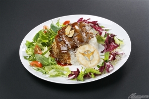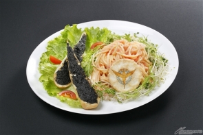 附有印上「天上人」标志的起司。炸白肉鱼&塔塔酱代表的形象是「刹那」、红萝卜是「阿雷路亚」、莴苣是「洛克昂」、菊苣则是「提耶利亚」。