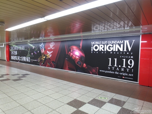 为了纪念将于本周末11月19日(六)开始上映的以及影像展开,『机动战士高达 THE ORIGIN IV 命运的前夜』巨大海报,于东京地下铁丸之内线・新宿车站的地下通道「Metro Promenade」期间限定登场。
