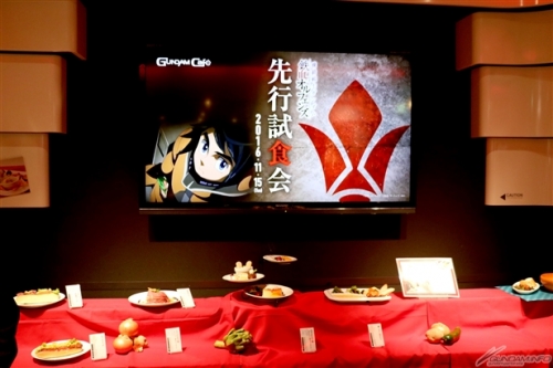 以动画本片中登场的用餐场面及名场面等等为主题的新菜单,每一到都是经过精心设计的美食。当作套餐特典发送的小玻璃杯和杯垫也有展示,一同为各位介绍。