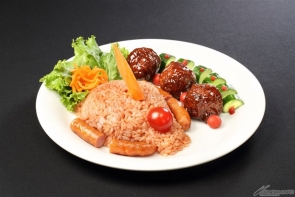 【左】蹂躙宇宙的人们~夏亚渣古・米饭和肉丸子的中华风餐盘~ 价格:1,296日圆(含税)