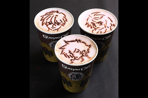 本饮料画上了历代男性角色的脸,「GUNDAM Café 秋叶原店」有23种丶「GUNDAM Café 台场店」有19种丶「GUNDAM SQUARE」有22种图案。价格为一杯464日圆(含税)。